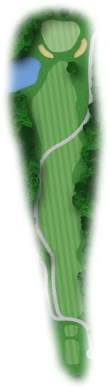 This uphill par four plays much longer that the yardage. The green is guarded by a tree to the right and bunkers right and left. A large false front will have balls roll back to the fairway on shots that don’t reach the middle of the green. Big slopes all over the putting surface make this one of the most distinct on the course.