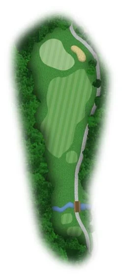 This challenging par 3 has a long narrow green with large ridge in the middle. Try to get your tee shot pin high to simplify your play around the green.