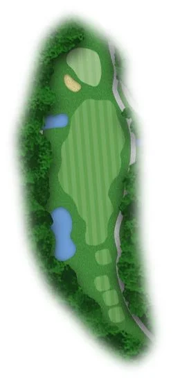 The second par 3 on the course is protected by hazards right and left. The green has a small flat area on the front, then funnels down and to the left.