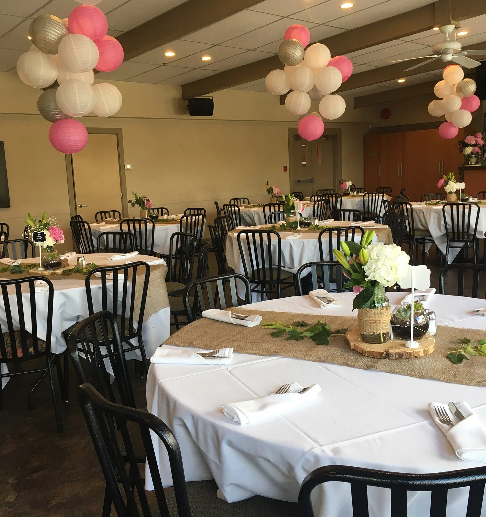 We have multiple areas available to book, including both indoor and outdoor. Our large outdoor deck with beautiful views is a lovely choice for a summer event and our spacious banquet room is always a great option!